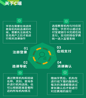 U培+:平臺是基于“民辦教育全場景綜合服務(wù)+資金監(jiān)管”的互聯(lián)網(wǎng)+模式,通過“行政管理+金融監(jiān)管”的結(jié)合,實現(xiàn)對民辦教育機(jī)構(gòu)的辦學(xué)審批、師資建設(shè)、教學(xué)質(zhì)量、服務(wù)質(zhì)量、誠信監(jiān)督、學(xué)費(fèi)監(jiān)管、異動預(yù)警等全生命周期管理。